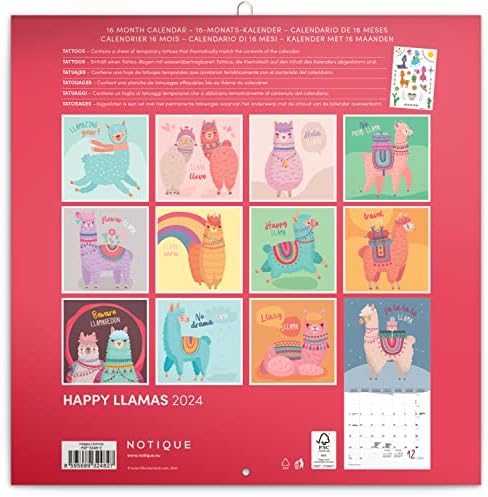 Happy Llamas 2024 Wall Calendar, Monthly Calendar, 30 x 30 cm, 30